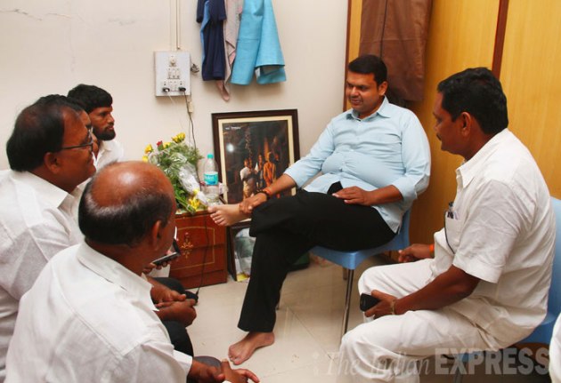 Devendra Fadnavus interacts with the party workers. (Source: Express Photo by Amit Chakravarty)