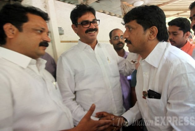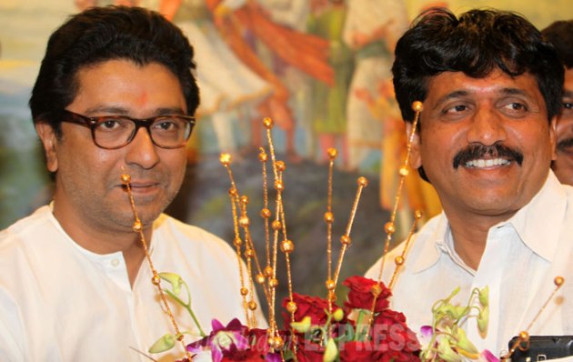 Sharad Bhimaji Sonawane greets Raj Thackeray with flowers. (Source: Express photo by Prashant Nadkar)