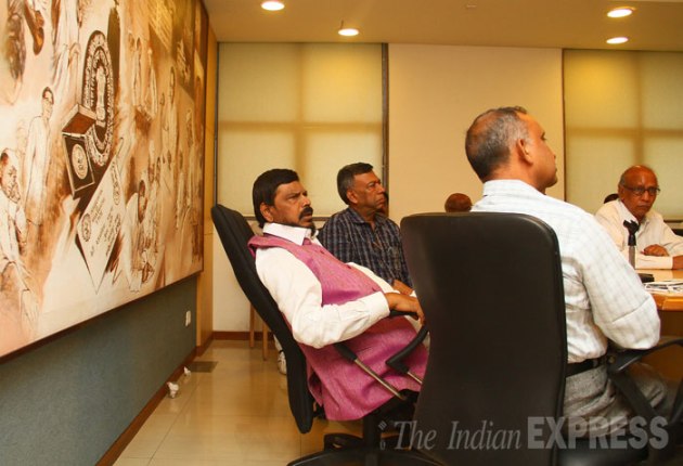 RPI Chief Ramdas Athawale at a RPI core committee meeting. (Source: Express Photo by Amit Chakravarty)