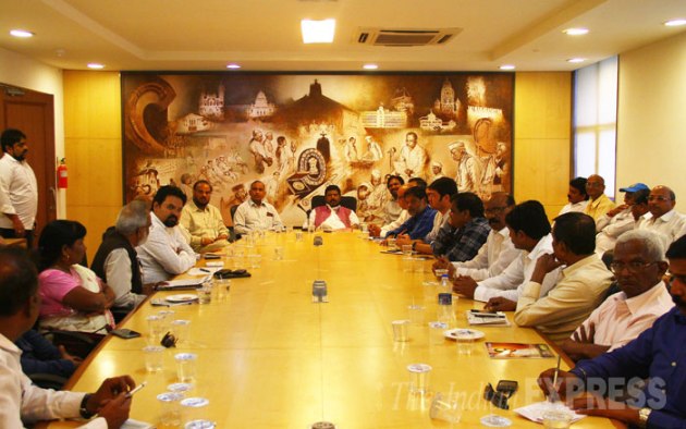 The meeting was followed by a press conference at Y.B.Chavan, Nariman Point, Mumbai. (Source: Express Photo by Amit Chakravarty)