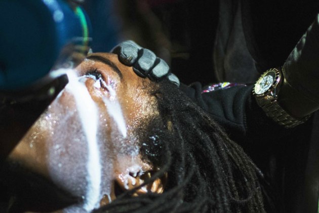 A protester has help washing his eyes out after being pepper sprayed during a second night of protests in Ferguson, Missouri November 26, 2014. Aiming to head off new looting and rioting, Missouri's governor on Tuesday ordered National Guard reinforcements into the St. Louis suburb of Ferguson following overnight violence ignited by the clearing of a white police officer in the fatal shooting of an unarmed black teenager. (Source: Reuters)
