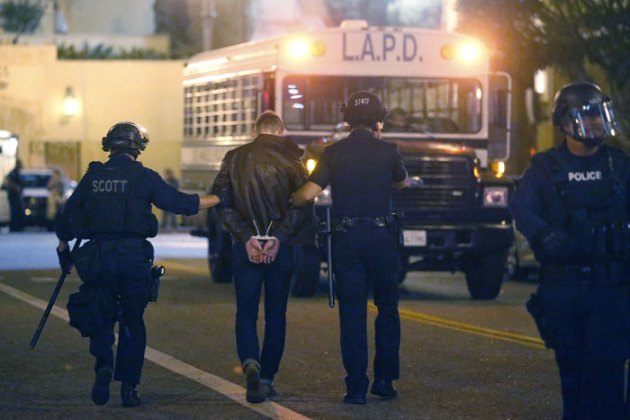 Police arrest protesters in Los Angeles, California, following Monday's grand jury decision in the shooting of Michael Brown in Ferguson, Missouri, November 26, 2014. (Source: Reuters)