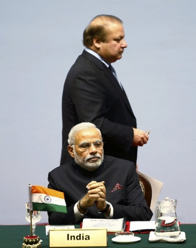 Pakistani Prime Minister Nawaz Sharif walks past his Indian counterpart Narendra Modi (foreground) during the opening session of 18th South Asian Association for Regional Cooperation (SAARC) summit in Kathmandu November 26, 2014. South Asian leaders from Afghanistan to the Maldives met in Kathmandu on Wednesday for a summit that was undermined by traditional bickering between rivals Pakistan and India. (Source: Reuters)