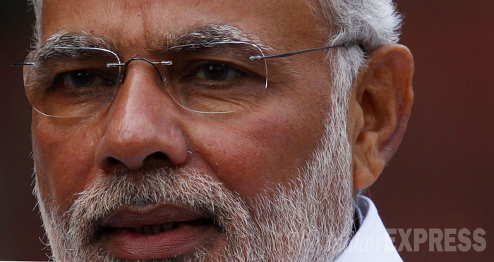 Prime Minister Narendra Modi at the Parliament on the first day of the winter session in New Delhi on November 24. (Source: Express Photo by Neeraj Priyadarshi)