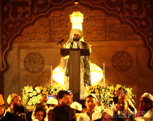 Nineteen-year-old Shaban Bukhari, son of Imam Syed Ahmed Bukhari, has been formally announced as the 14th Shahi Imam of Delhi Jama Masjid in New Delhi on November 22, 2014. (Source: Express photo by Praveen Khanna)