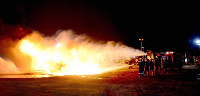 Ahmedabad: Rescue Workers of Ahmedabad Fire and Emergency Service Perform their skills during the Celebrate Fire Safety Week at Sabarmati River Front in Ahmadabad on Wednesday (April 22). (Source: PTI)