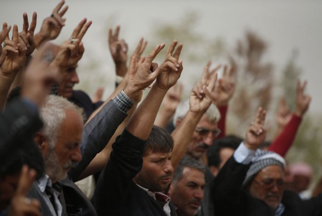 Syrian Kurdish fighters take position as fighting between Islamic militants and Kurdish forces to the west of Kobani, Syria continues near the Turkey-Syria border near Suruc, Turkey, Tuesday, Sept. 30, 2014. (Source: AP photo)