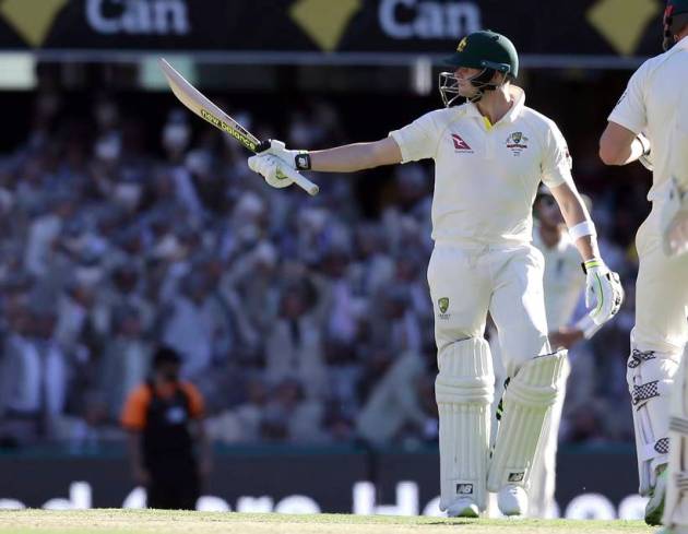 Losing Peter Handscomb soon after left Australia reeling at 76-4. Skipper Steve Smith took the responsibility on himself and went on to build a strong partnership with Shaun Marsh. Smith scored his 22nd Test fifty.
