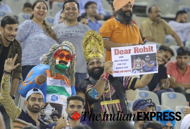 Spectators during the 1st T20 at PCA stadium in Mohali. (Express Photo by Kamleshwar Singh)