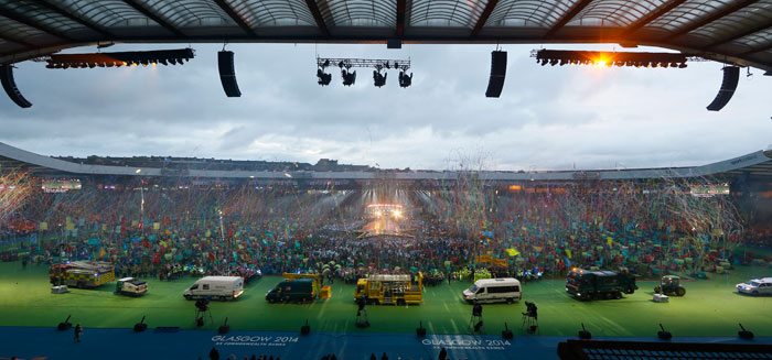 Vehicles of the emergency services and Glasgow city council take part in a drive past during the Closing Ceremony for the Commonwealth Games Glasgow 2014, at Hampden Park stadium, in Glasgow, Scotland. (Source: AP)
