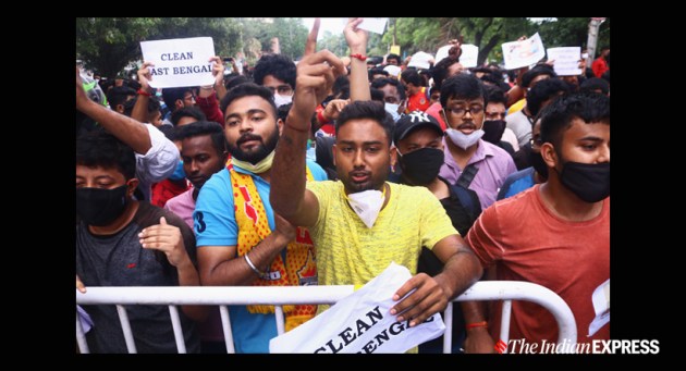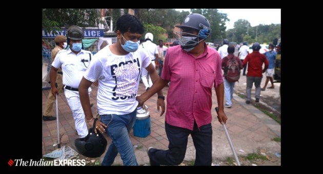According to police sources, five were injured and taken to the hospital, while around 50 were arrested after the incident in front of Eden Gardens. (Express Photo by Shashi Ghosh)