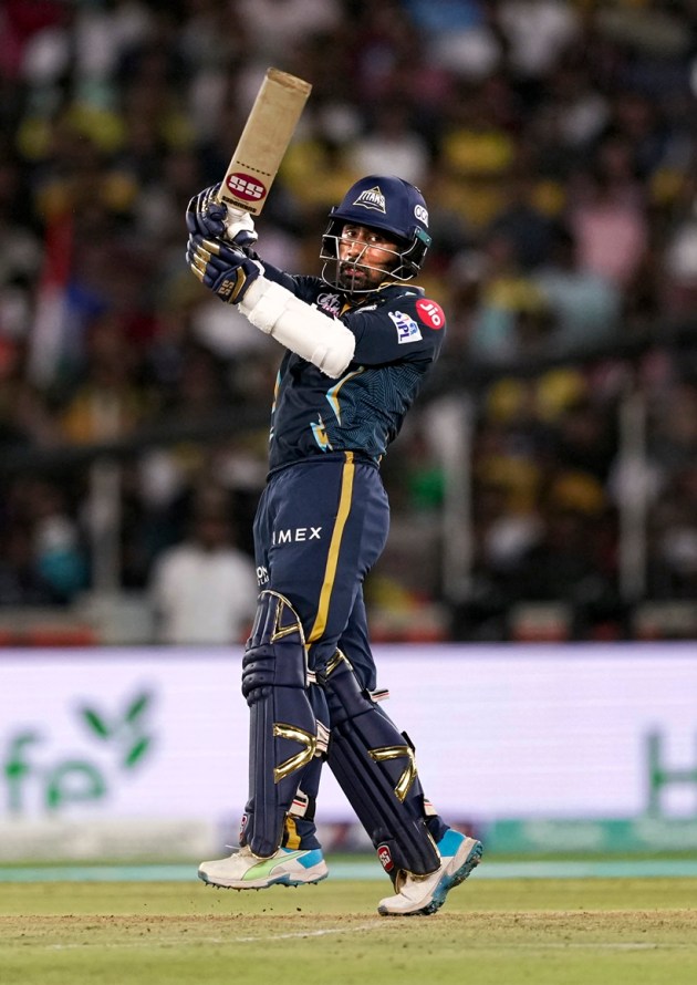 Gujarat Titan's Wriddhiman Saha play a shot during the IPL 2023 cricket match between Chennai Super Kings and Gujarat Titans, at Narendra Modi Stadium, in Ahmedabad, Friday, March 31, 2023. (PTI Photo/Kunal Patil)