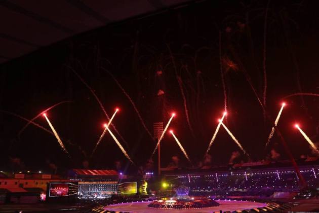 Bollywood star Shahrukh Khan made his entry in a golden chariot and recreated the Chak de India moment at the opening ceremony.
