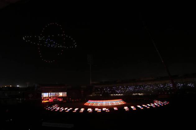 The spectacular fusion dance performances were choreographed by Shiamak Davar. He was joined by 1100 artists who danced to the tunes created by Ranjit Barot.