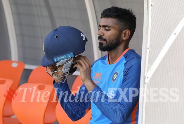 Indian wicketkeeper Srikar Bharat during a practice session at Narendra Modi stadium ahead of India vs Australia 4th Test match in Ahmedabad. (Express Photo by Nirmal Harindran)