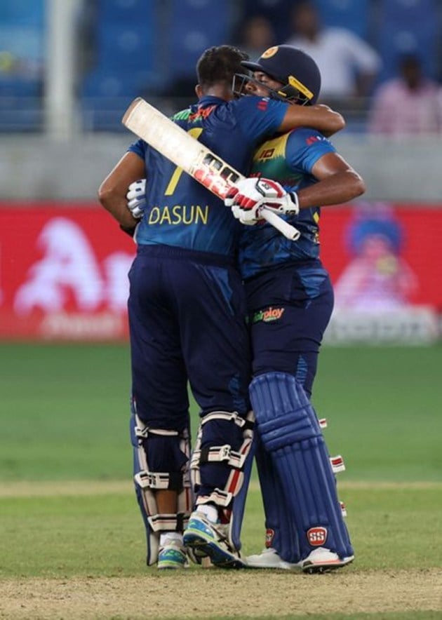 Sri Lanka skipper Dasun Shanaka and (33 not out) and Bhanuka Rajapaksa (25 not out) remained till the end to complete the task for their team with a match-winning, fifth-wicket partnership of 64 runs. (AP Photo/Anjum Naveed)