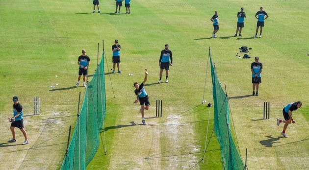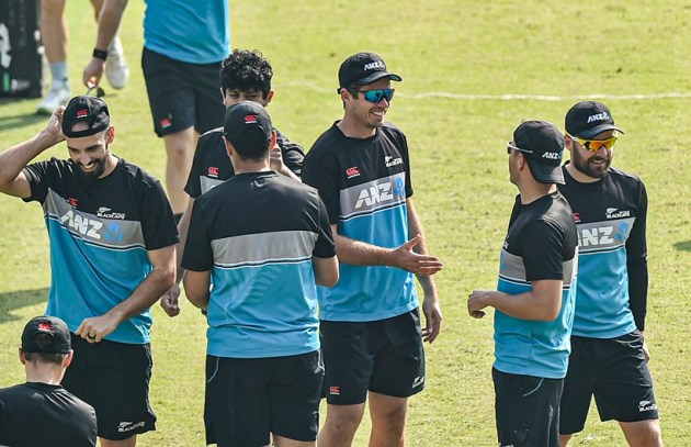 New Zealand players during a practice session, ahead of the first Test against India in Kanpur. (PTI)