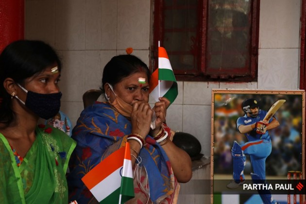 Fans in Kolkata pray for the Indian team's win in the T20 World Cup against Pakistan. (Express photo by Partha Paul)