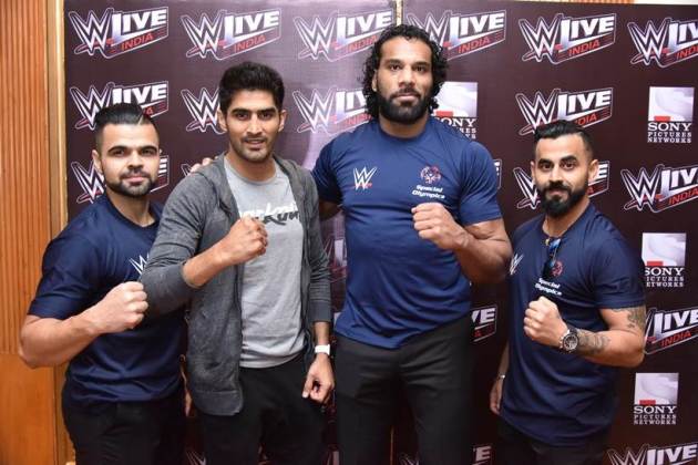 WWE superstar Jinder Mahal met star boxer Vijender Singh. Jinder will be in India on December 9 for his match against Triple H that headlines WWE Live India 2017. He invited Vijender for the match. Vijender, in turn, invited Jinder for his his match agianst Ghana’s Ernest Amuzu in Jaipur that will be held on December 25. The two shared a work out session alongwith Jinder's side kicks the Singh Brothers. Jinder Mahal, whose real name is Yuvraj Singh Dhesi, is a Canadian of Indian origin and is known in the ring as the 'Modern Day Maharaja.' He was WWE Champion after beating Randy Orton in July but the title was recently taken away from him by AJ Styles.