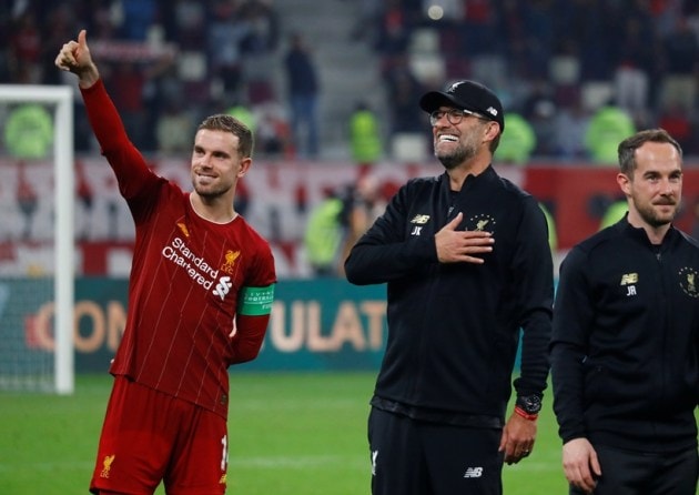 Liverpool's Jordan Henderson and manager Jurgen Klopp celebrate after winning the Club World Cup. (Source: Reuters)