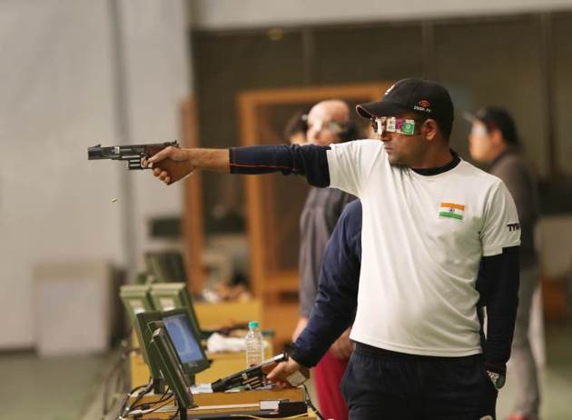 Indian shooter Vijay Kumar serves as a Subedar Major in the Dogra Regiment (16th Batallion). (Source: Express Photo by Praveen Khanna)