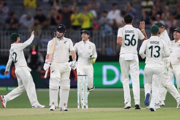 New Zealand started disastrously when opener Tom Latham fell for a duck on the fifth delivery of the innings after spooning a return catch to a fired up Starc. (AP Photo)
