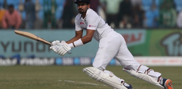 India scored 345 in the first innings thanks to Iyer’s 105 and New Zealand was bowled out for 296 in reply as Axar Patel took 5-62 on day three. (AP Photo)