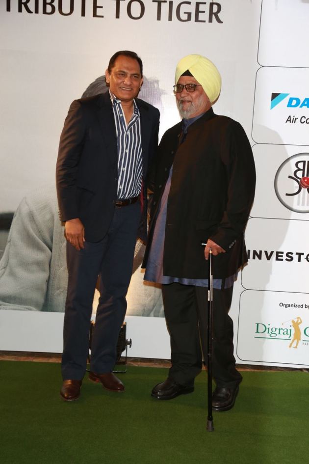 Former cricketer Mohammad Azharuddin, who had captained India in 47 Tests, is pictured with Bishan Singh Bedi at the event. (Source: APH)