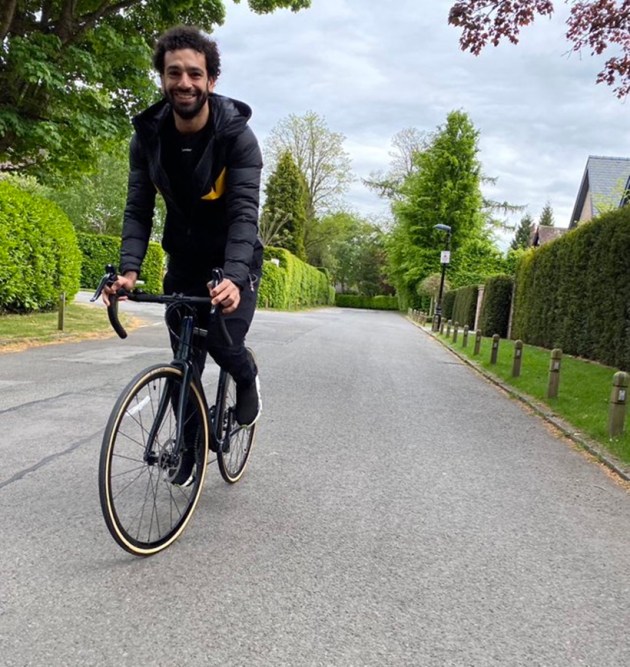 Mohamed Salah of Liverpool looks happy cycling outside (Salah/Twitter)