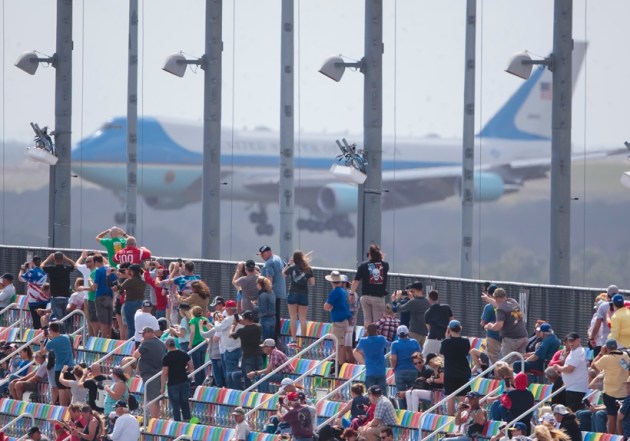 US President Donald Trump became just the second sitting president to attend the Daytona 500 on Sunday. He arrived on his Air Force One. (Source: USA Today)