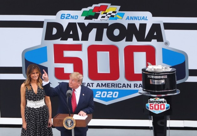 Donald Trump, with first lady Melania Trump by his side, addressed the crowd before the race and called the Daytona 500 "a legendary display of roaring engines, soaring spirits and American skill, speed and power". (Source: USA Today)