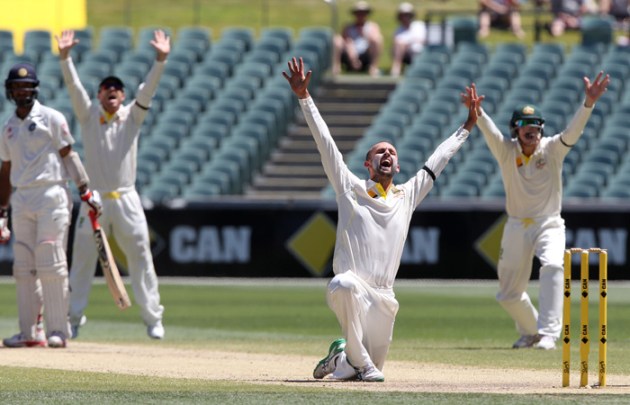 Nathan Lyon who used to roll pitches not far away from the main Adealide Oval was bowling one the spells of his career. (Source: AP)