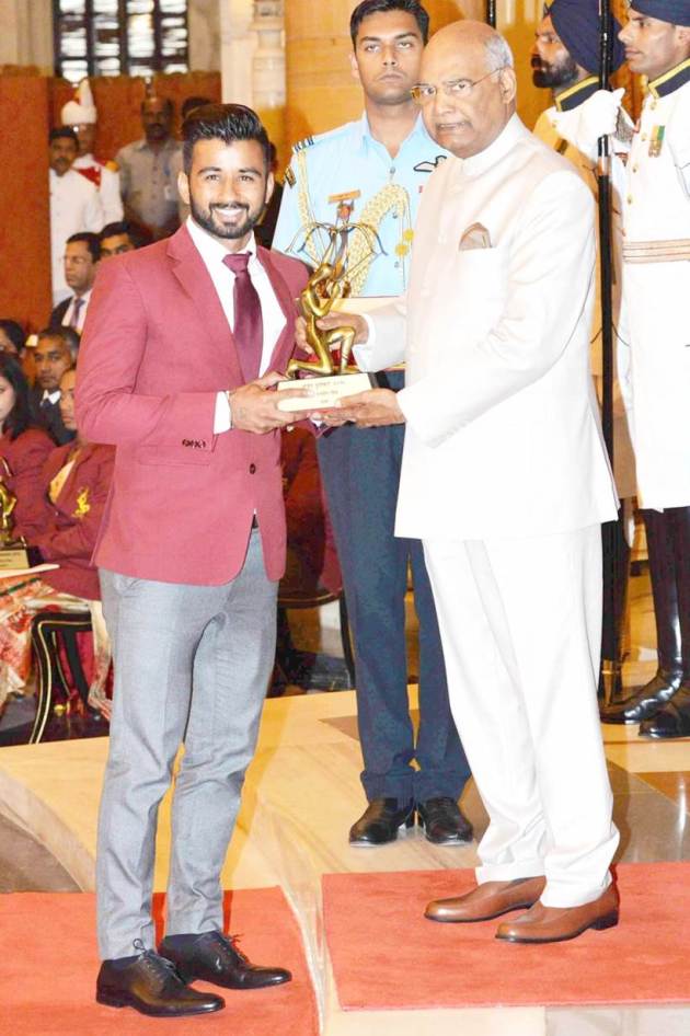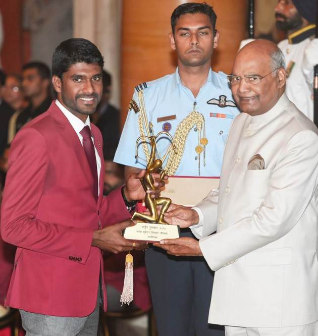 President Kovind confers Arjuna Award 2018 upon G Sathiyan for his outstanding achievements in Table Tennis. His achievments include gold medal (Men Team) in CWG 2018, silver medal (Men Doubles) in CWG 2018, bronze medal (Mixed Doubles) in CWG 2018 and bronze medal (Men Team) in Asian Games 2018. (Source: Twitter/rashtrapatibhvn)