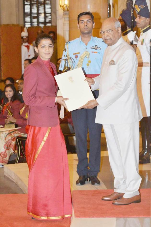 N Sikki Reddy was awarded the Arjuna Award 2018 by the President on Tuesday. The Indian shuttler won a bronze medal in women doubles event in Commonwealth Games held earlier this year. She also won a gold medal in the mixed team category in the same event. (Source: Twitter/rashtrapatibhvn)