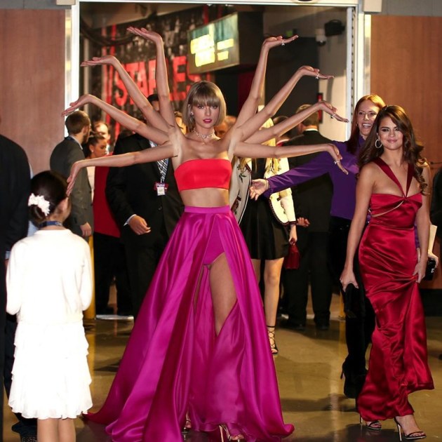 After the 58th Grammy Awards in Los Angeles on February 15, Taylor Swift has made news for various reasons. She is the first woman to bag 'Album of the year' twice and she made it to the list of best-dressed celebrities for the evening. In fact, she has made it to the 'Front page of the Internet', thanks to a photo of her backstage, posing with her hands up in the air. The image made its way to Reddit's photoshop battles owing to a user called RandomDKguy who posted the picture. Here's a look at what happened next. Source: Imgur