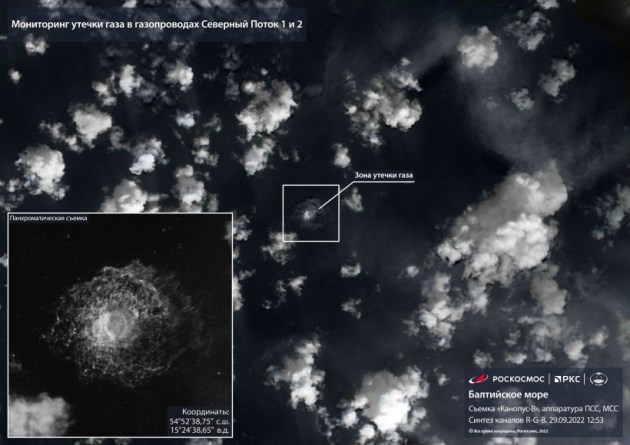 In the meantime, it’s nearly impossible for anyone to approach the highly flammable plume to attempt to curb the release of gas, which energy experts estimate may continue until Sunday. In Pic: Russian United Nations Ambassador Vasily Nebenzya shows a news image of a huge methane leak, as he addresses a U.N. Security Council meeting on the Baltic Sea pipeline damage. (AP Photo)