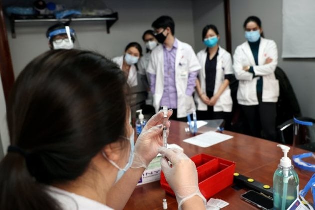 Saudi Crown Prince Mohammed bin Salman gets a dose of a coronavirus vaccine in Riyadh, Saudi Arabia. (REUTERS)
