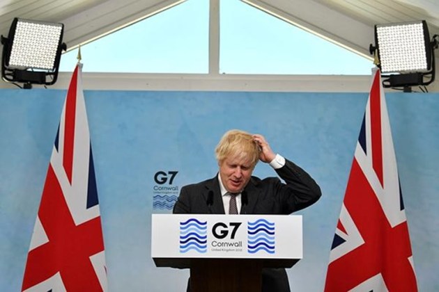 Britain's Prime Minister Boris Johnson speaks during a news conference at the end of the G7 summit in Carbis Bay, Cornwall, Britain, June 13. (Reuters Photo)