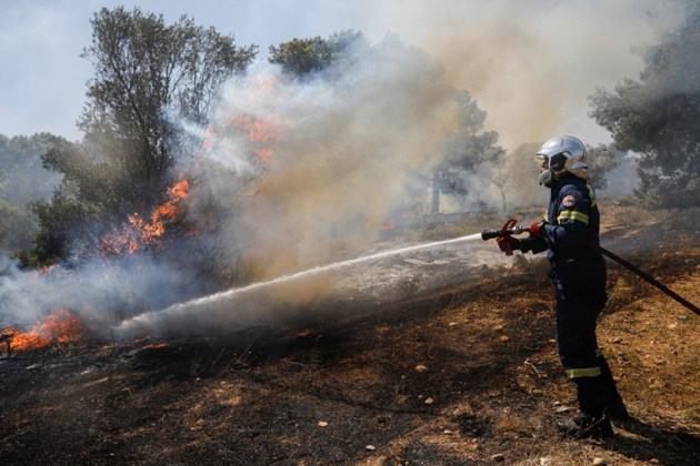 A wildfire burns in Ntrafi, near Athens, Greece July 20, 2022.( REUTERS)