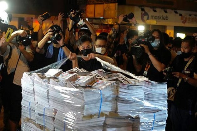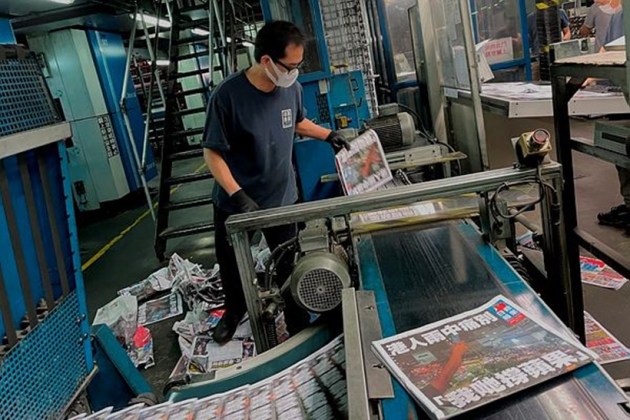 Last issue of Apple Daily seen at printing house in Hong Kong, early Thursday, June 24, 2021. After midnight, as the printers ran one final time, Apple Daily shut off its website and erased all its social media platforms after authorities froze company-related assets as part of a national security probe. (AP Photo)
