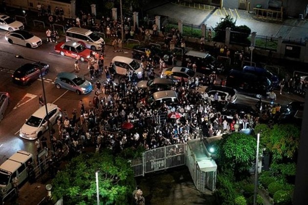 Supporters gather outside the Apple Daily headquarters in Hong Kong, Wednesday, June 23, 2021. Authorities have said dozens of Apple Daily articles may have violated the security law, but there was no suggestion that Apple Daily content would be blocked or censored. (AP Photo)