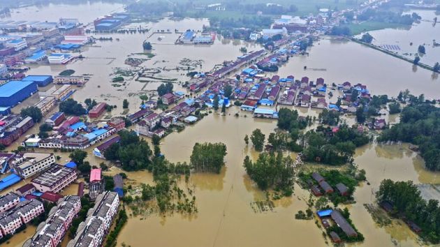 China experienced its annual flooding this season that resulted in the evacuation of thousands of residents as large parts of the country reeled under some of the heaviest rainfall seen in decades. The aerial photo shows the extent of flooding in Guzhen Town of Lu'an City in eastern China's Anhui Province. (AP)