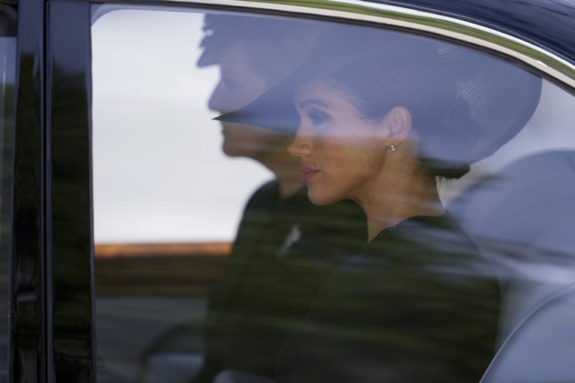 Meghan, Duchess of Sussex, leaves after attending the funeral service for late Queen Elizabeth II at Westminster Abbey in central London, Monday, Sept. 19, 2022. (AP)