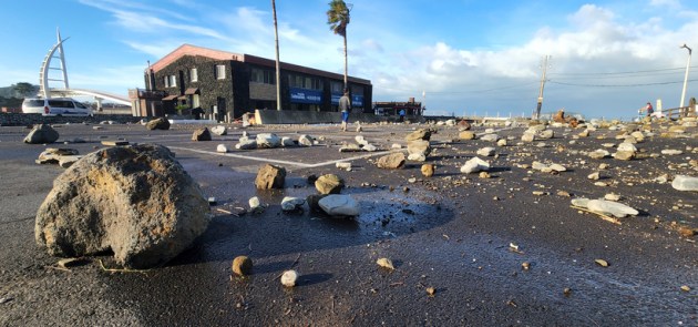 Stones are seen on a parking lot in Jeju. Thousands of homes, buildings and factories were flooded or destroyed, and hundreds of roads, bridges and facilities were damaged. (AP)