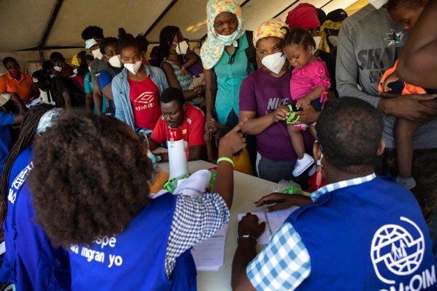 Haitians who were deported from the U.S. border with Mexico are attended by members of the UN's International Organisation of Migration before they get tested for Covid-19 at Toussaint Louverture International Airport in Port-au-Prince, Haiti. (AP)