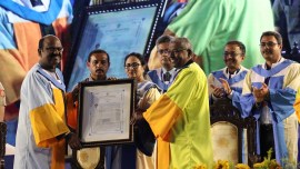 At the university's fourth annual convocation on the Rajarhat campus, Vice-chancellor Felix Raj handed over the citation to Banerjee in the presence of Governor Bose who called it an occasion “where a deserving woman leader has been honoured with the degree”.