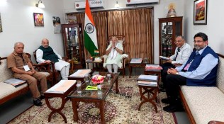 Leaders sport BJP’s new accessory — saffron Gandhi cap