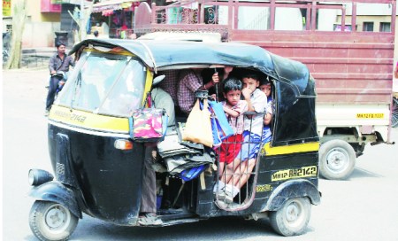 Jampacked with students,autorickshaws continue to pose a danger to young students and RTO officials seem to be ignoring it though the officials themselves say it is illegal to use autorickshaws for transporting school students.