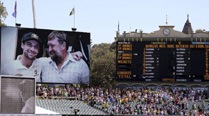 Hundreds in the crowd wore the number 63 on their shirts or hats and others held up 63 Not Out signs.