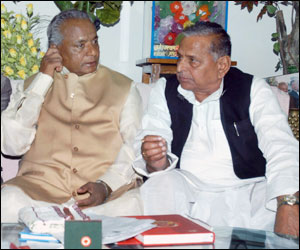A day after Kalyan Singh quit BJP,Samajwadi Party leaders Mulayam Singh Yadav and Amar Singh met the former UP Chief Minister who announced he would campaign for the SP in the coming Lok Sabha polls.